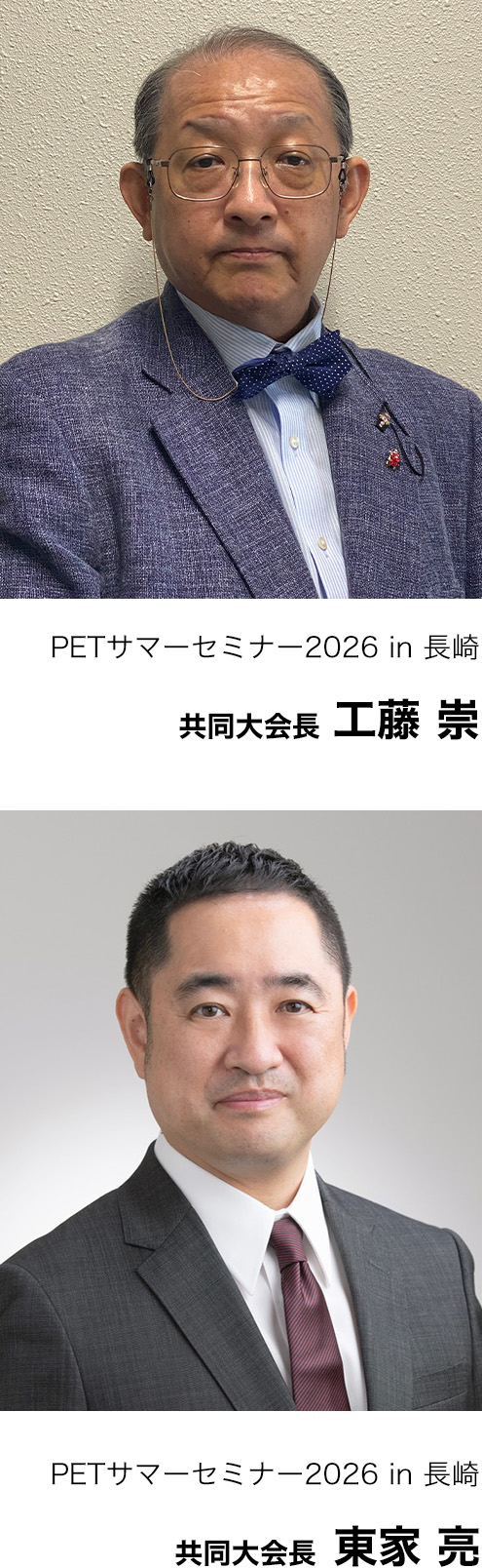 2026年のPETサマーセミナーは長崎で開催させて頂くことになりました。今回は、工藤崇(長崎大学 原爆後障害医療研究所 アイソトープ診断治療学分野)と東家亮(長崎大学 医歯薬学総合研究科 放射線診断治療学研究分野)の共同大会長で開催いたします。
